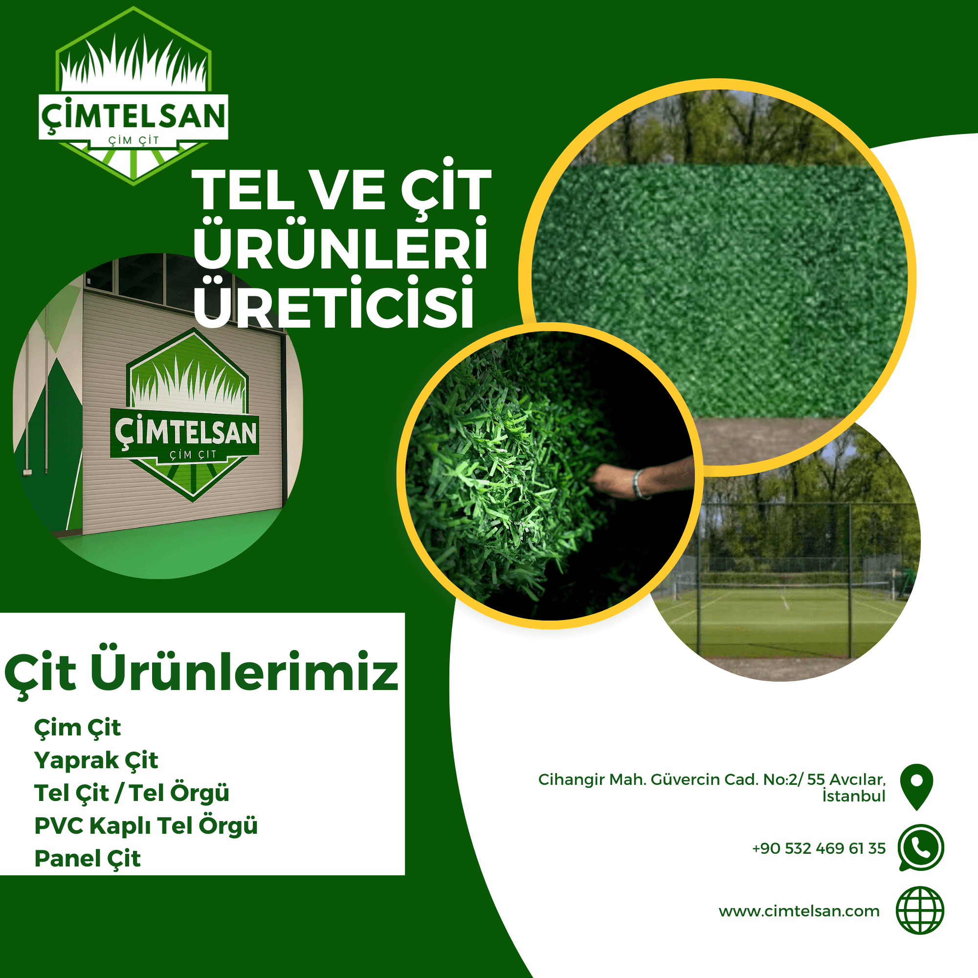 Eğer İstanbul’da estetik, dayanıklı ve bakım gerektirmeyen bir çözüm arıyorsanız, Yaprak Çit İstanbul uygulamaları ideal tercihtir. Çimtelsan üretimi yapay yaprak çit sistemleri ile yaşam alanlarınızı hem koruyun hem güzelleştirin.